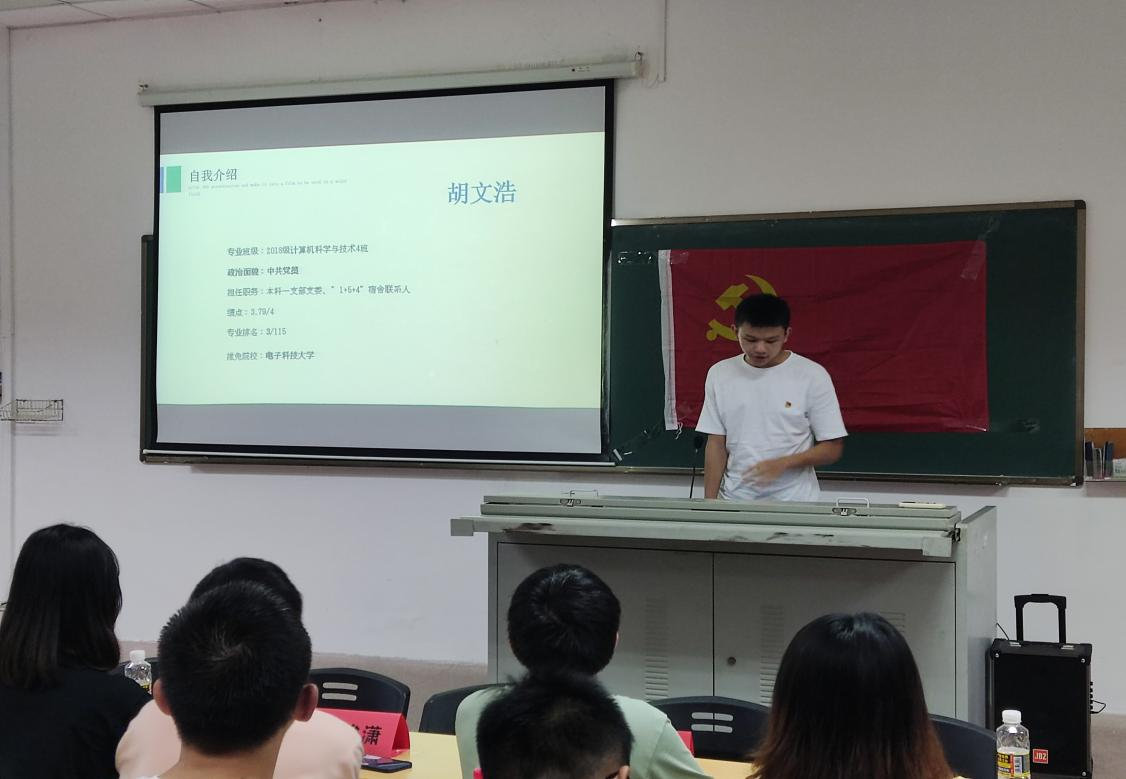 接下来是本科2018级胡文浩同志向大家分享了自己在学习中的一些经验,并介绍了自己保研的经历,告诫学弟学妹们要平衡好学习和生活。在保研路上,和志同道合的朋友们一起进步,大家共同监督。除了专业成绩之外,数学和英语等公共课也要认真学习,同时积极参加各项竞赛。保研过程中要格外关注对信息的收集,大家要关注学院官网以及研招办官网对于保研的一些要求,避免错过。