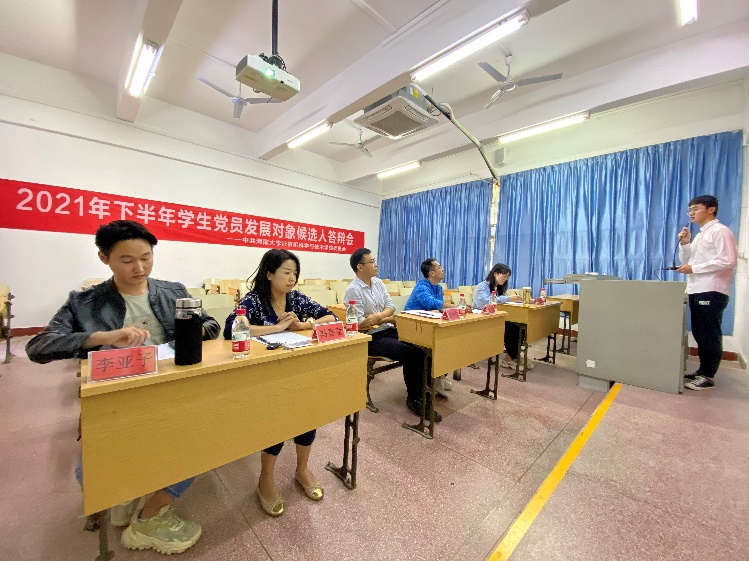 2021年11月9日下午15点30分,yl88858永利中国在2教104、105举办了2021年下半年学生党员发展对象候选人答辩会。出席本次会议的有学院党委副书记黄小欧书记,学工办主任陈鹏老师,研究生第一党支部书记倪晗老师,研究生教学秘书钟力老师,本科生第一党支部书记万隽老师,本科生第二党支部书记冯春莹老师、各党支部副书记以及49位拟发展对象候选人参与本次答辩大会。