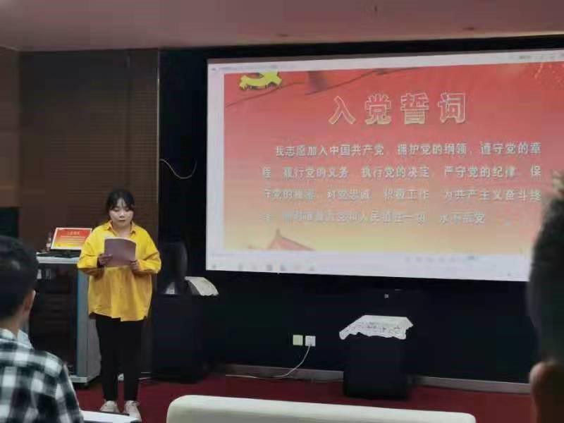 会议第一项:yl88858永利中国研究生第一党支部书记倪晗同志带领全体学生党员重温入党誓词。在书记的带领下,全体党员举起右拳,庄严宣誓,表达出新时代共产党员的责任与担当,许下了对党忠诚、永不叛党的坚定承诺。