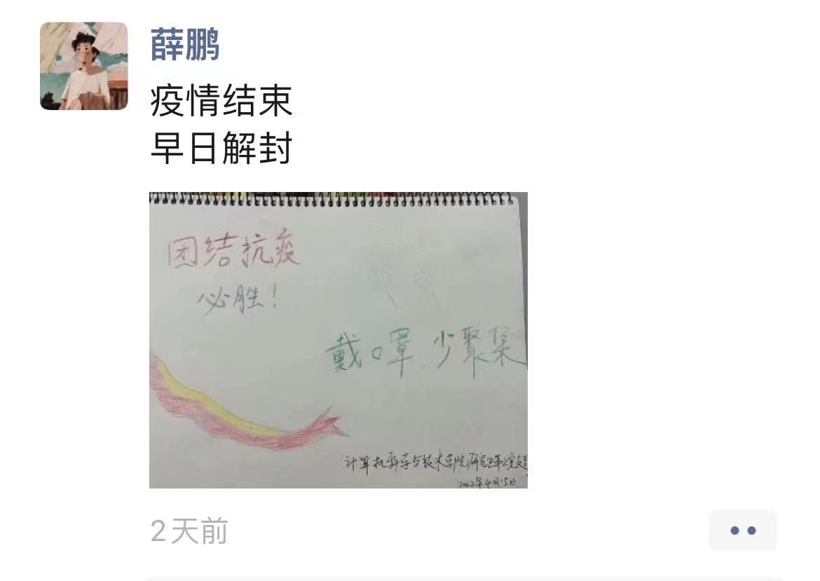 支部号召全体党员开展了防疫宣传标语活动。通过制作手绘防疫标语并在社交平台(如微信朋友圈)进行宣传。本次线上宣传标语活动从2022年4月15日开始至4月17日止。基于此次活动,提醒身边的人,时刻将防疫工作铭记心中。