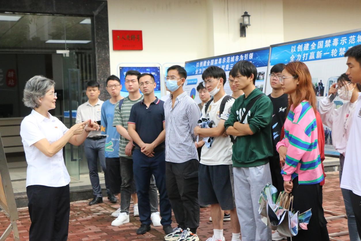 参观学习结束后,陈鹏老师和符良玲主任互相交流在参观学习中的一些心得体会。陈鹏老师说:“我今天从头到尾都在认认真真听符主任您讲解,听了非常感动,您的每一个案例都体现了禁毒人的工作热情和人文关怀。今天带队过来参观学习,我受益匪浅。此次一同过来的都是我们学院的党员和学生干部,他们有的是大一的新生,有的是准备保研北大清华的研究生,有的是即将毕业走向社会的毕业生,他们的使命各不相同,但是他们今天听了符良玲主任的讲解,让这群学生们对禁毒工作有了很深的感触”。