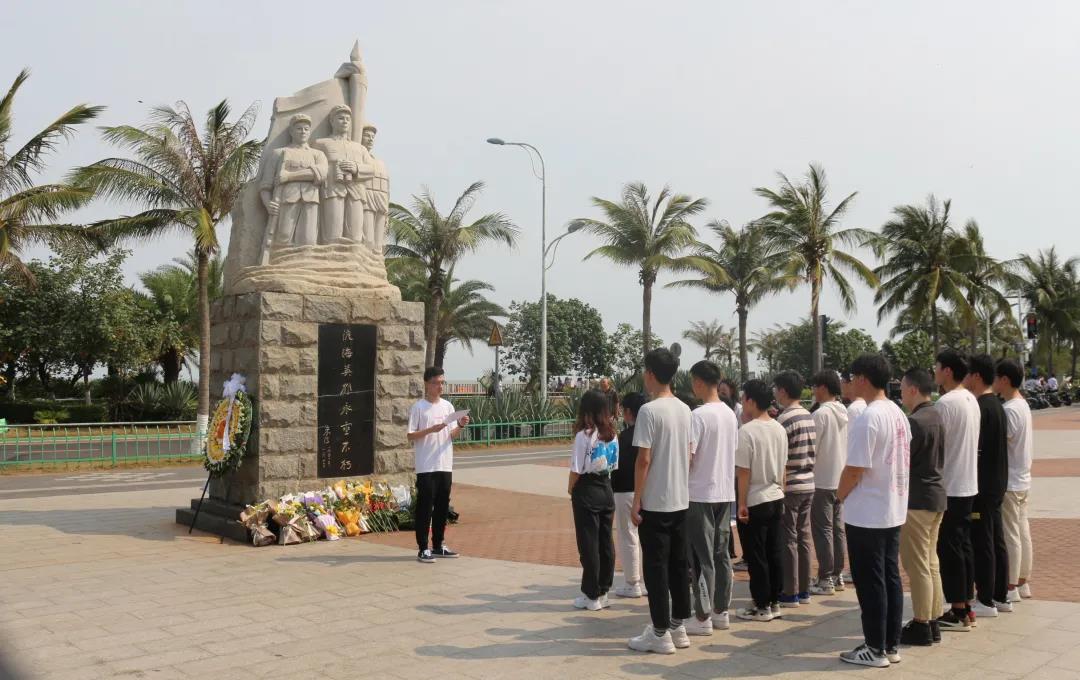党员及入党积极分子代表在白沙门渡海英雄纪念碑前,整理队形,默哀三分钟,为革命先烈献花,深切表达了对革命烈士的追思。