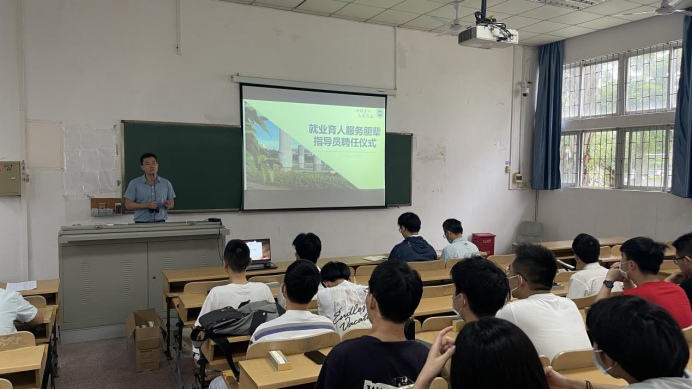 黄小欧副书记为就业育人服务的朋辈代表颁发指导员聘书,并做动员讲话。黄书记指出,求职就业不仅是毕业生们大学生活的总结,更是育人的重要环节,通过这个过程,能够有效提升毕业生的社会责任感和综合能力提升。朋辈指导员要有效发挥示范引领作用,带动毕业生们端正求职态度,掌握科学求职方法,找到合适岗位,为社会发展发光发热。