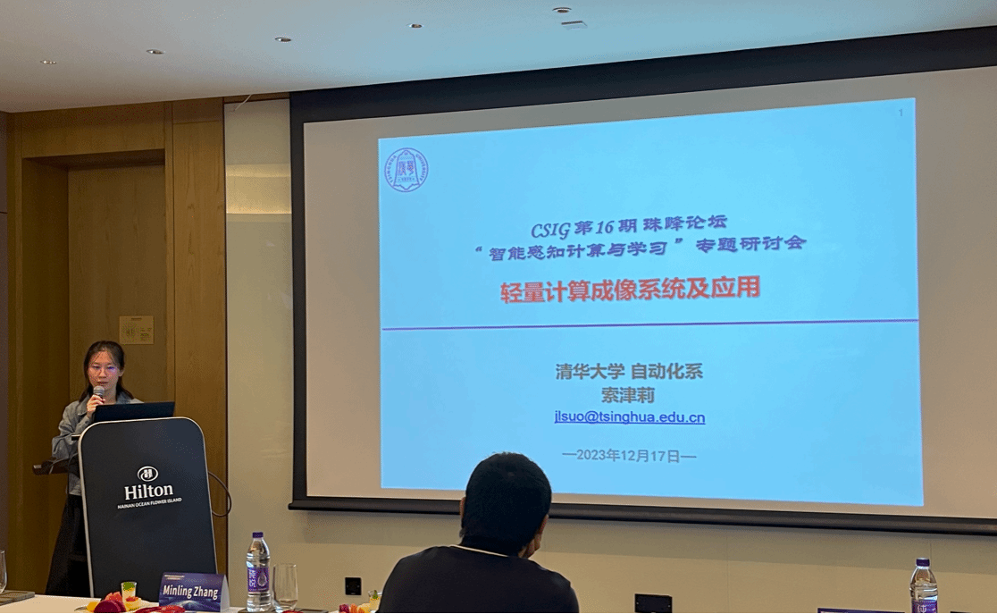 索津莉副教授作了题为“轻量计算成像系统及应用”的报告,分析了计算摄像系统轻量化难点,探讨轻量化计算成像系统的必要性与解决方案,介绍了轻量级高清晰计算相机,手持式高曝光单通量计算摄影设备的最新进展,与大家共同探讨了下一代轻量计算成像系统的可行性。
