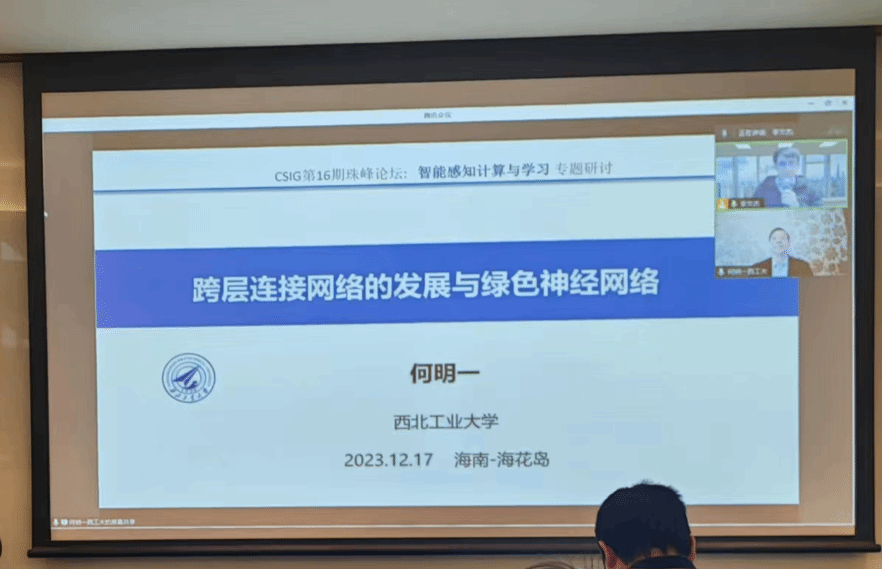 何明一教授作了题为“跨层连接网络的发展与绿色神经网络”的报告,以空天遥感信息获取与智能处理为背景,介绍了跳跃式连接和多通道网络等技术,表明不同深度网络的跨层连接,可以更好地融合不同层次的特性。并从绿色范式、绿色模型、链接机制、绿色学习和绿色实现5个层面探讨了神经网络应用的绿色发展理论基础,具有重要意义。