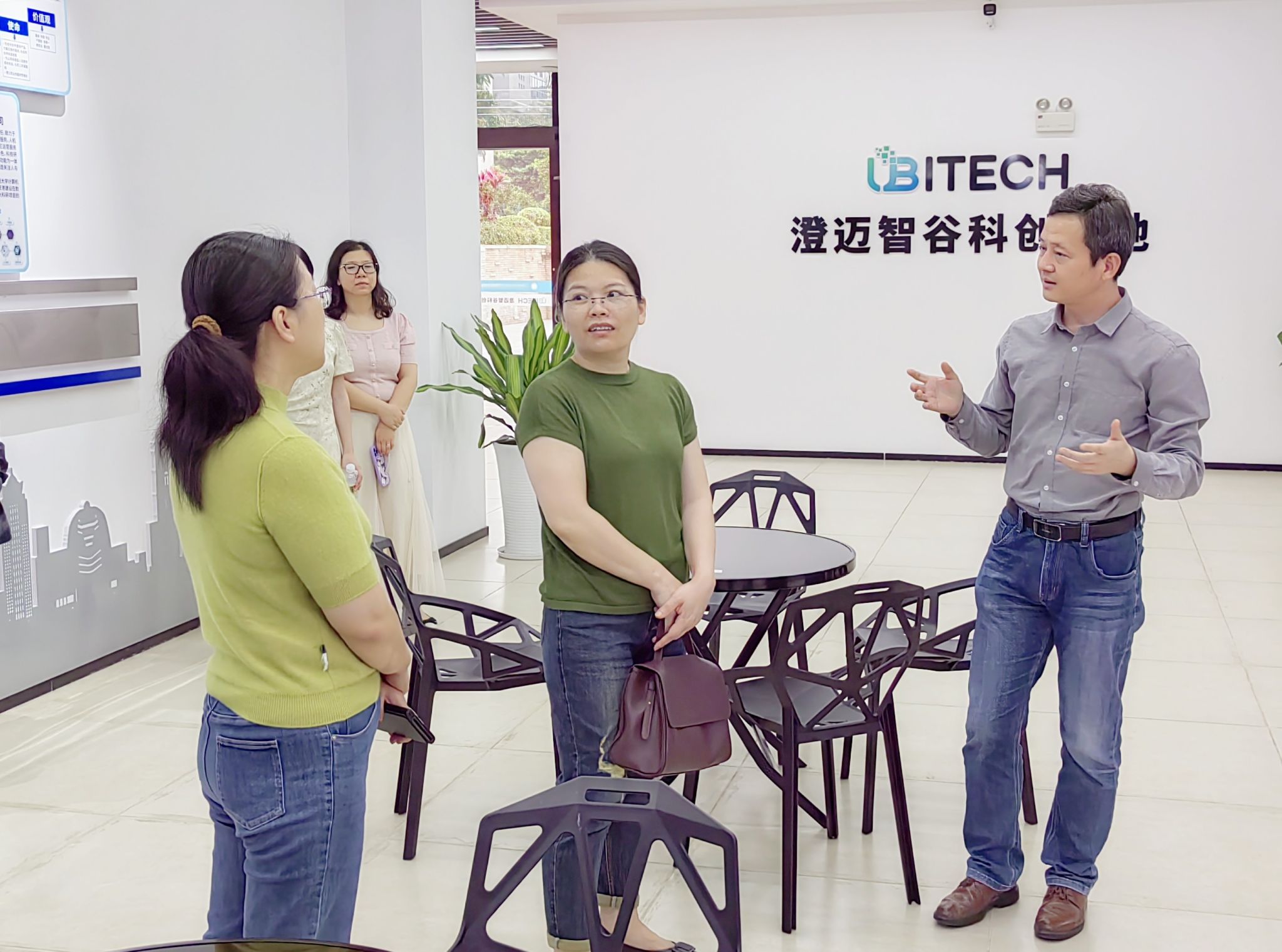 本站讯(记者 柏东鹏 刘晓娜)4月9日下午,澄迈县工业信息化和科学技术局党组成员、副局长王花一行到我院澄迈国际教育基地,对我院国际合作办学、产学研智谷科创基地进行调研并在会议室举行座谈会。我院副院长刘华中、谢夏出席座谈会,座谈会由刘华中主持。