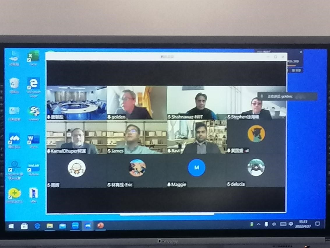 NIIT中国区总裁Kamal发表会议致辞,NIIT中国区总裁KamalNIIT中国区副总裁徐海峰、NIIT中国华南区校区合作项目管理总监丁联铭、NIIT中国区技术总监李经纬、中国区教学总监Shahnawaz Ahmad KhanNIIT方驻海大负责人刘德才,同步出席腾讯线上会议。
