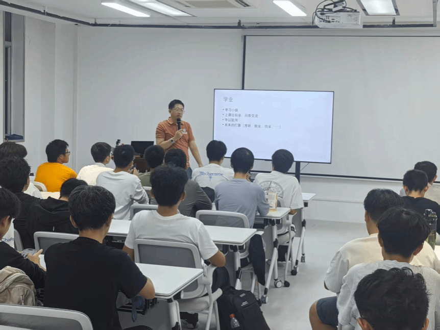邱钊围绕大学生涯全周期规划展开讲解,系统阐述了从大一适应期到大四毕业季的学习重点和发展方向。他介绍了核心课程学习策略,建议大家积极参加学科竞赛、提高科研能力,鼓励大家保持对知识的好奇心与未知欲,重视基础知识学习,循序渐进积累、平衡发展、全面成长。