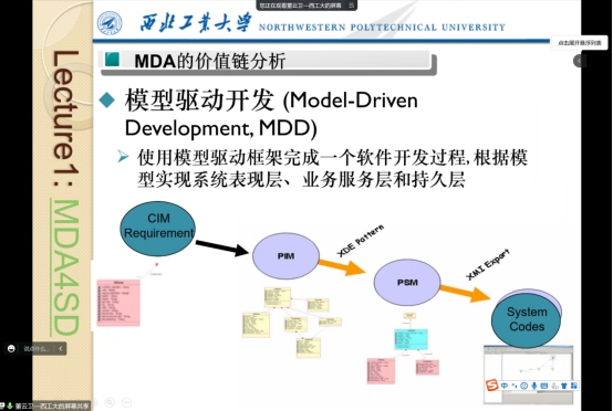董云卫教授主要讲授了模型驱动开发的协同设计与分析技术,主要包括模型驱动架构的原理和方法、MDA的技术标准和发展趋势、软件架构的定义与内涵等内容。董威教授主要讲授了可信软件技术,主要包括高可信软件的基本概念、关键技术、未来的挑战与相关工作等内容。两位教授的教学广而细致,通俗易懂,不仅对软件工程前沿的研究方向和技术进行了详细的阐述,还列举了相关的应用案例,理论联系实际,突出重点,为同学们起了很好的引导作用,使同学们对这一学科有了更深的认识。