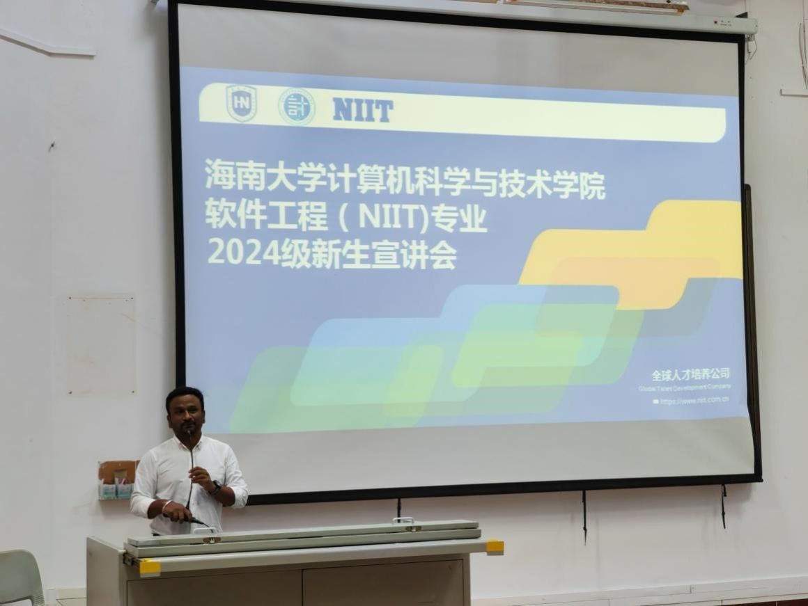 此次宣讲会的主要参会人员为yl88858永利中国刘华中副院长、黎才茂教授、教务与科研办郑虹主任,NIIT 公司全国教学主管韩亮老师,yl8858永利集团 NIIT 合作项目负责人 Santy 老师,NIIT 外教 Asit 老师、Vipin 老师、Aditya 老师,NIIT 中教刘德才老师、苗琦龙老师,NIIT 助教李悦、钱承翔、林道发,以及软件工程(NIIT)专业 2024 级全体新生与留学生。宣讲会由 NIIT 助教李悦担任主持。
