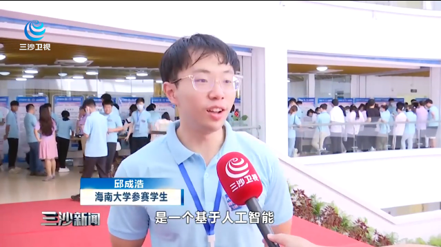 图3 三沙卫视采访我院参赛学生邱成浩同学