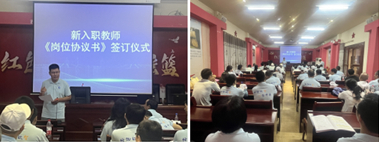 张清辰副院长主持《岗位协议书》签订以上,张院长首先对新教师介绍说明了《岗位协议书》的内容、签订的意义以及新教师的注意事项等,然后按照入职先后顺序与院长杨天若院士进行一一签订《岗位协议书》。
