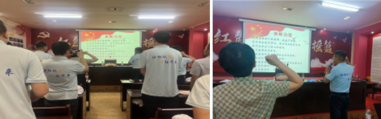 图4.院长杨天若院士带领新教师宣誓,老教师重温教师誓词