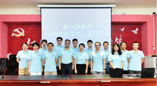 图7.《岗位协议书》签订完毕后,学院领导与新入职教师合影留念