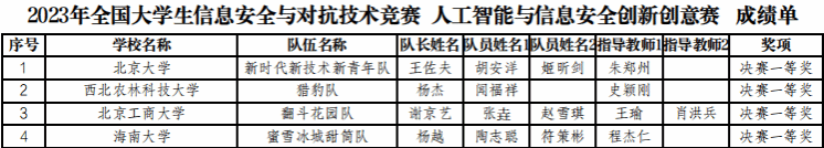 近日,第20届全国大学生信息安全与对抗技术竞赛“智能安全赛”在北京理工大学举办yl88858永利中国的两支学生参赛队伍分获决赛一等奖和决赛优秀奖。