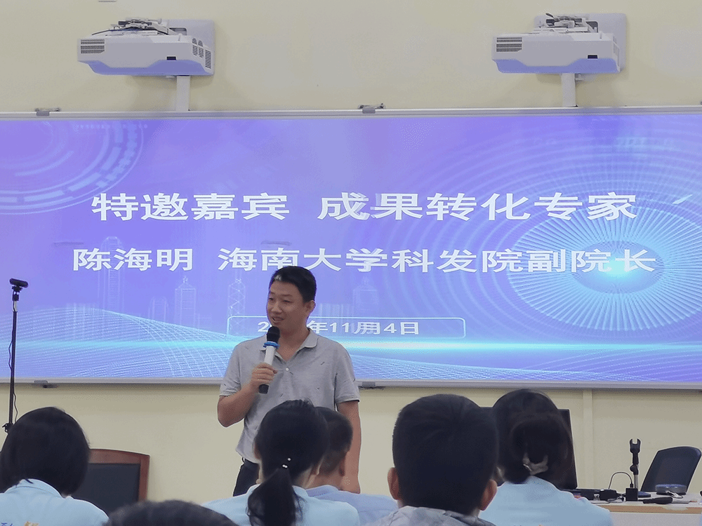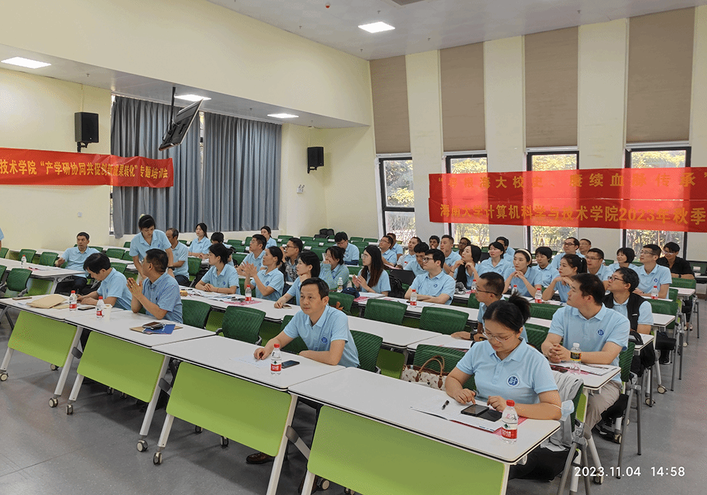 本站讯(通讯员 龚琨),11月4日下午,yl88858永利中国在儋州校区7教101室召开2023年秋季学期全院大会暨yl88858永利中国“产学研协调共促创新成果转化”专题培训会,并邀请了yl8858永利集团科学技术发展院陈海明副院长作关于科研成果转化的讲座,yl8858永利集团学术副校长、计算机学院院长杨天若,学院党委书记王红英,副院长程杰仁、谢夏、刘华中以及学院的教职工参加了此次讲座。