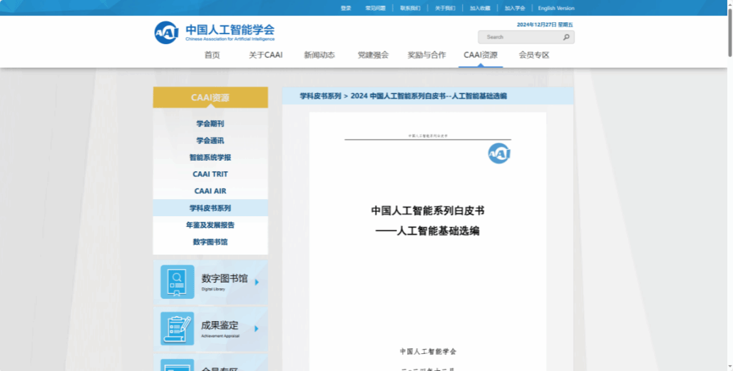 12月15日,2024中国人工智能大会(CCAI 2024)在北京落幕。本届大会以“创新驱动 智启新程”为主题,由中国人工智能学会主办,北京市科学技术委员会、中关村科技园区管理委员会、北京市海淀区人民政府支持举办,线下线上超千万人次参与活动。当天,大会同期活动之一的中国人工智能学会系列白皮书发布会举办。在产学研各界嘉宾见证下,由我院参与编写的《人工智能基础选编》和其他5本白皮书相继亮相,大模型技术体系的开源影响力评估方法及榜单现场发布。